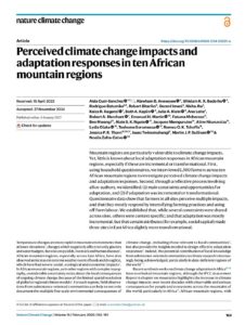 This article is an abridged version of the original text “Perceived climate change impacts and adaptation responses in ten African mountain regions” published in Nature Climate Change, 15, under the CC BY 4.0 license in January 2025 © Cuni-Sanchez et al. Please note that references have been removed. For more detail, full references, and to quote text please use the paper available for download on the right.