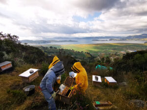 • Training process: the process of establishing apiaries, in the case of Lake Tota, is structured together with a complete training program, which aims to establish productive and commercial chains for the by-products obtained in the beekeeping system. In this sense, the following activities were carried out: